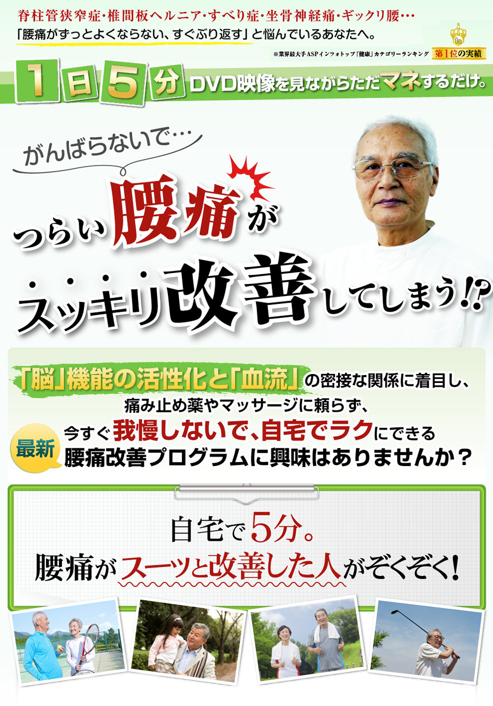 「腰痛改善5ミニッツ 自宅でラクにできる「青坂式」腰痛改善プログラム」では、