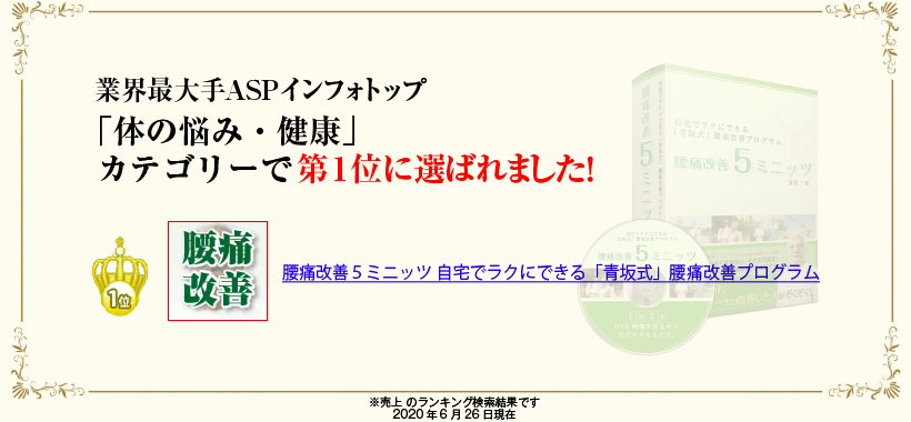 「腰痛改善5ミニッツ 自宅でラクにできる「青坂式」腰痛改善プログラム」では、